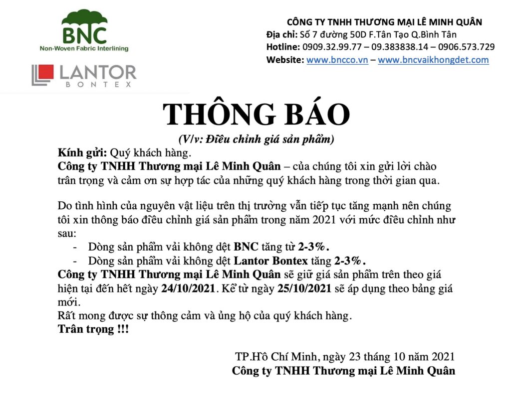 Tin tức Read more Chính Sách Đổi Trả Hàng Tháng 7 24, 2021 / 901 / 0 Với kinh nghiệm và uy tín mà thương hiệu BNC hoặc Lantor Bontex của Công ty TNHH Thương Mại Lê Minh Quân mang lại thì... Xem chi tiết bncco